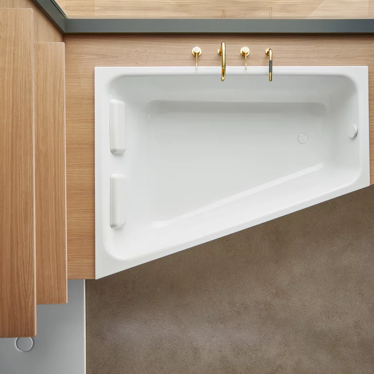 Families need space - in the bathroom and in the bath. BetteSpace L takes care of both. Thank to its trapezoidal shape, it makes perfect use of the available space while offering the greatest bathing fun at the same time. It even has enough space for two to enjoy a comfortable bath together – and as the lying side is 130 cm wide, they can also sit side by side. And because the foot end is 75 cm wide, it saves almost half a square metre of space in the bathroom. More freedom of movement for loved ones, and with no loss of comfort.