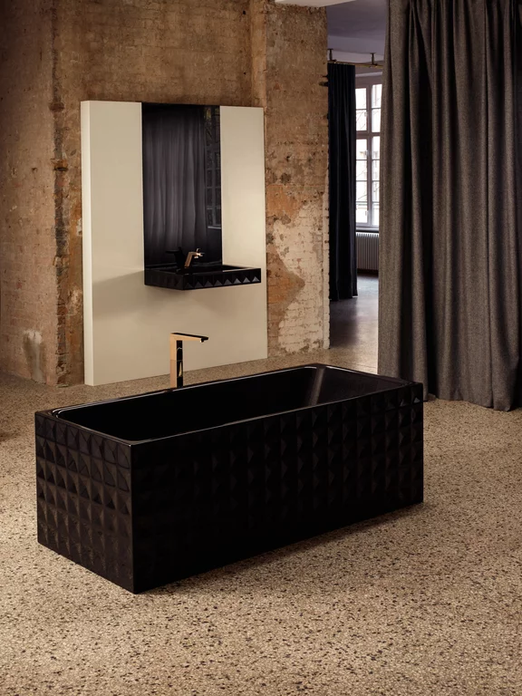 BetteLoft Ornament brings gloss and glamour into the bathroom. Depending on how the light falls, the faceted exterior shimmers and shines as full of mystery and promise as a precious gem. The sparkling pigments of the Midnight glaze reinforce the play with light and shadow, and never fail to magically attract the eye. With plenty of space and a comfortable back geometry, this opulent bath is perfect for a lovely, long soak. A bath should be fun, should be enjoyable - everyday life is often boring enough.