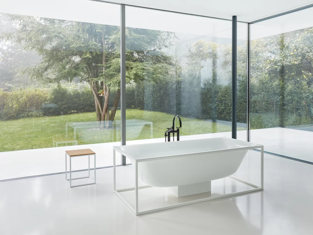 The bath with the open, delicate frame construction fits easily in any modern living environment where a reduced, minimalist design is important. Thanks to the frame construction, the elegant glazed titanium steel of the BetteLux Shape creates quite a sculptural effect, while at the same time being unusually delicate and light. Various accent colours and other bathroom elements in the same design give the bathroom an architectural character. Achieve pure relaxation by concentrating on the essential.