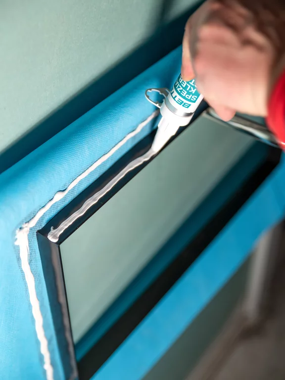 Processing the components was easy: first, the installation box was placed on the floor as a placeholder for the waste or overflow fitting, connected to the sewage pipe and closed with the supplied lid. This was followed by the impact and thermal insulation, after which the screed was applied. Once it was dry, the box was cut to the required height and a pre-assembled sealing cuff tested to ETAG 022 Kiwa fitted.