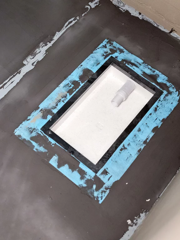 There was no need for lining to adapt to different height levels, as Easy Connect's installation height can be flexibly selected between 105 and 205 mm. In order to integrate the box into the composite seal to DIN 18534, all that was then required was for the tiler to coat the screed.