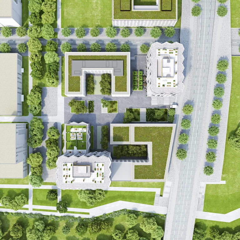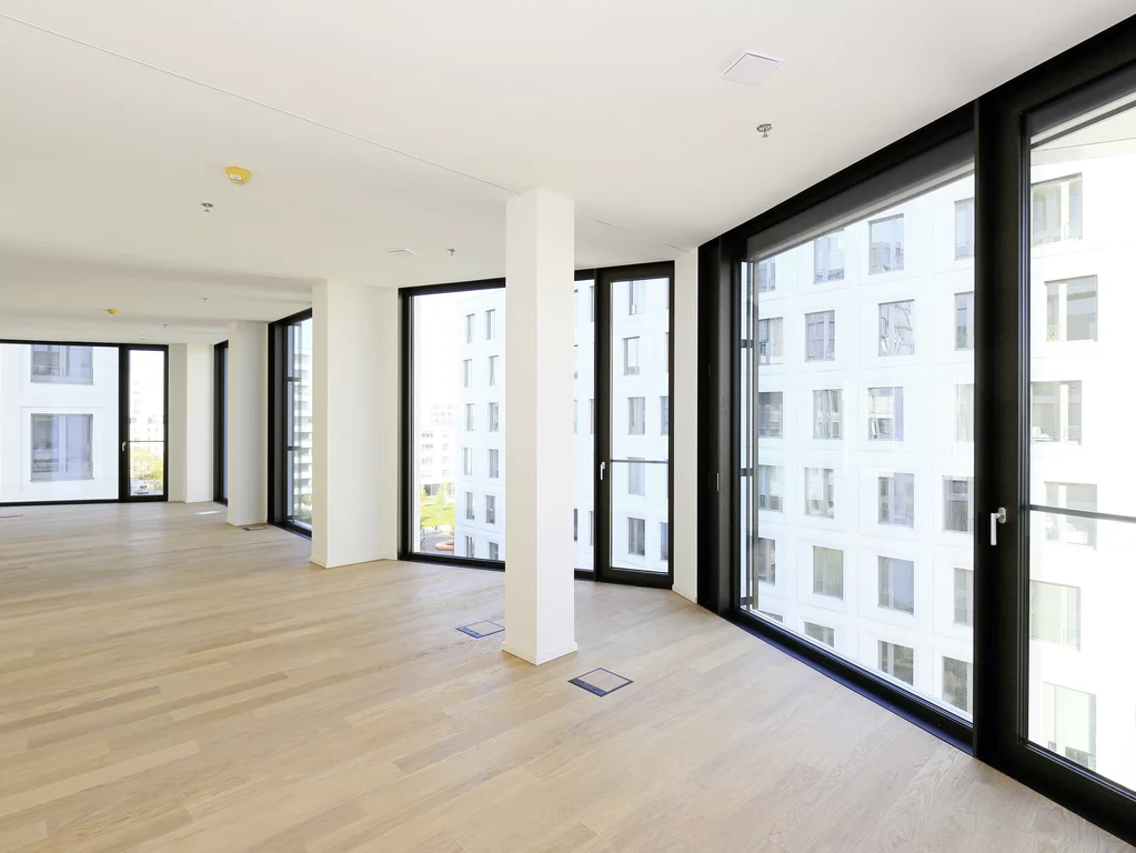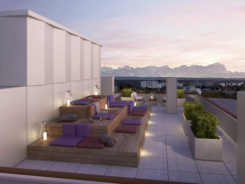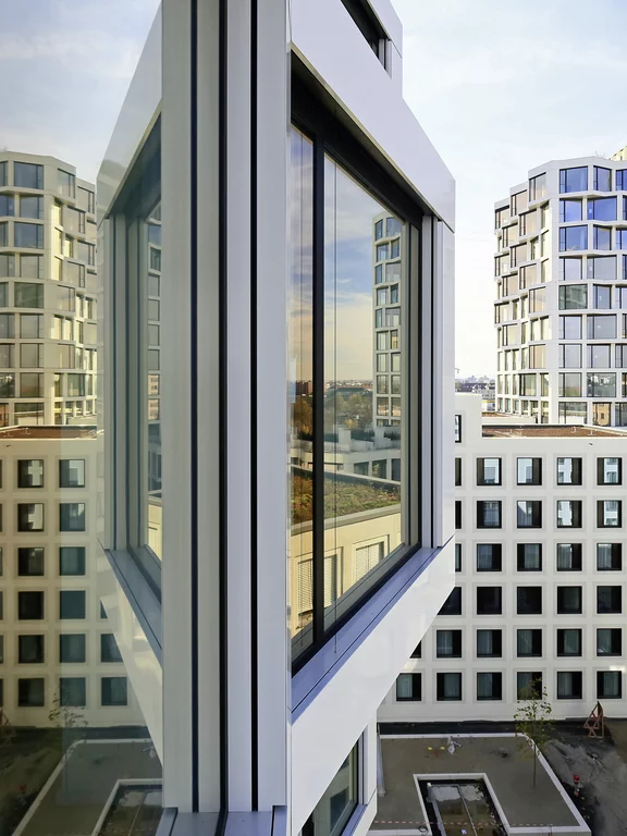 "Urban living: las 260 viviendas en propiedad de las torres de viviendas ""Friends"" ubicadas en la parte occidental de Múnich ofrecen a los habitantes de grandes urbes modernas una arquitectura de alto standing con el máximo confort. Además de dos azoteas comunes, un lounge de cocina y un gimnasio, también hay un conserje a petición, que se encarga de las compras, de regar las plantas, de la recogida de paquetes o la vuelta a la tintorería. Una App de servicios ayuda a reservar sitio en el lounge de cocina, horarios de entrenamiento en el gimnasio o a organizar el servicio de limpieza de ventanas o lavandería.