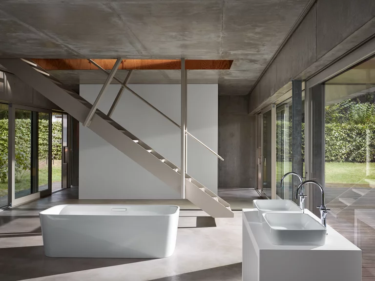 BetteOne es un concepto de baño que aúna bañera y lavabos fabricados en acero al titanio vitrificado en un único diseño. Los elementos característicos son un marco ancho en todo el contorno y un trazo interior rectilíneo. BetteOne brinda una expresión depurada de líneas en una multitud de dimensiones y versiones. Intemporal, universal y simplemente bella.