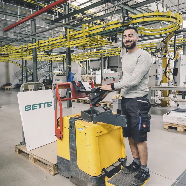 Alors que de nombreuses entreprises de sa taille produisent dans le monde entier, Bette concentre toute sa production ici, dans l'est de la Westphalie. Cela s'explique par les personnes que l'on trouve ici et par les processus de production sophistiqués qui ne sont mis en œuvre que dans notre usine de Delbrück. Bette fabrique depuis les années 70 des éléments de salle de bains en appliquant sa propre technique de formage. À l'époque, il n'y avait tout simplement pas d'argent pour une installation du commerce pour produits de masse. Nous avons alors misé sur notre propre concept de machine universelle et flexible, et c'est toujours le cas aujourd'hui.