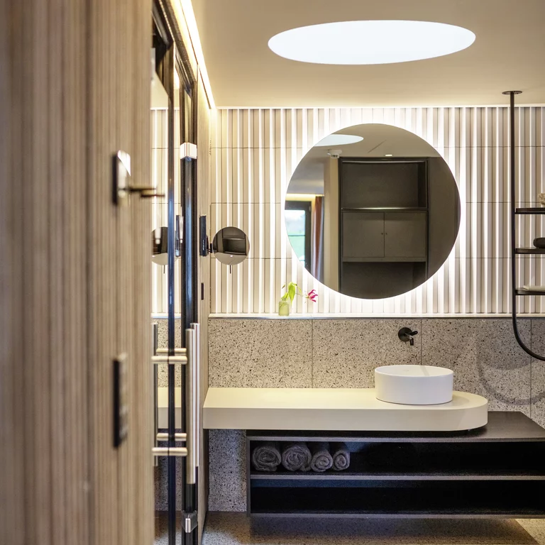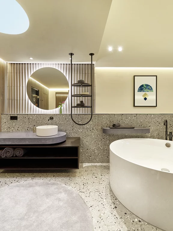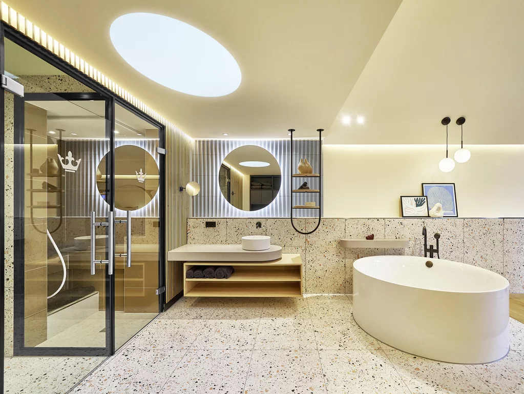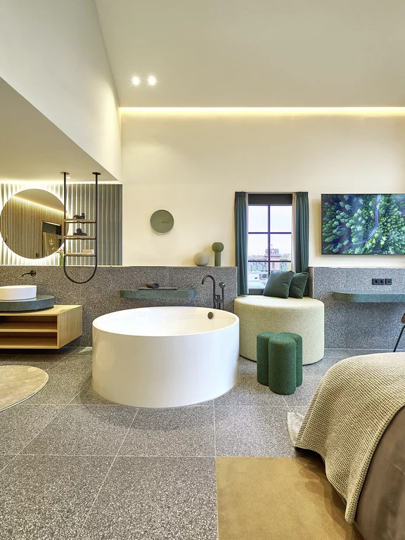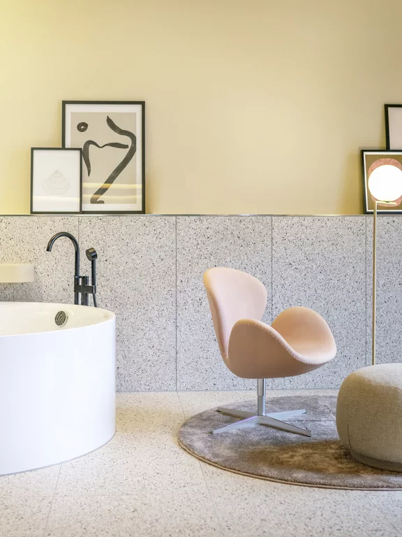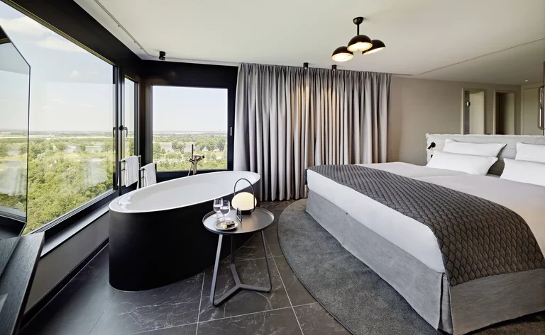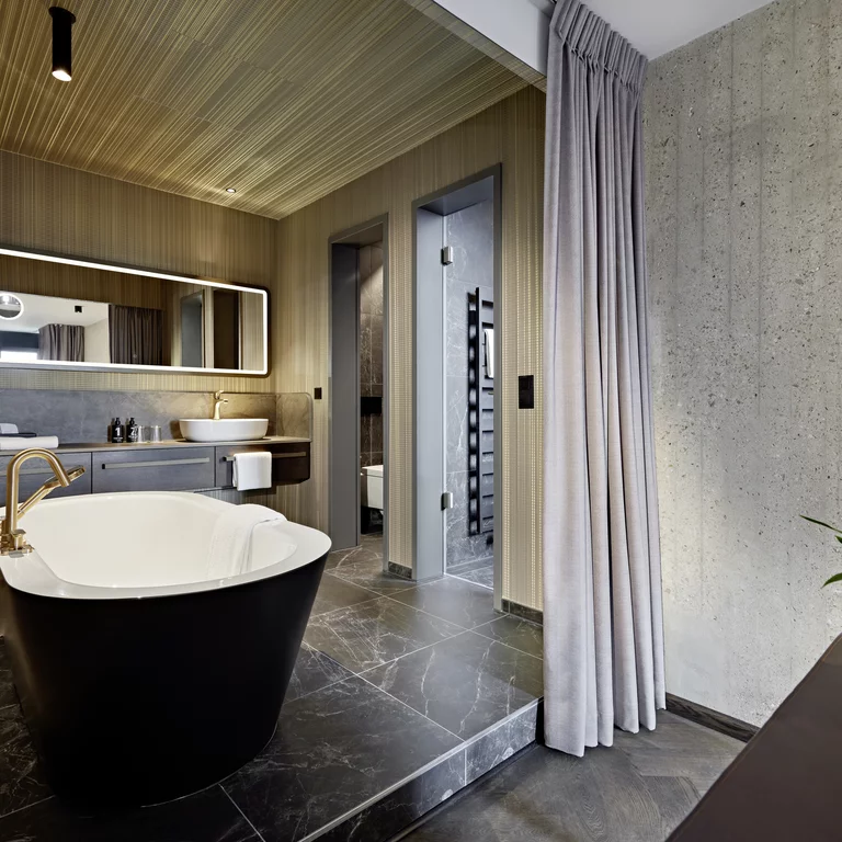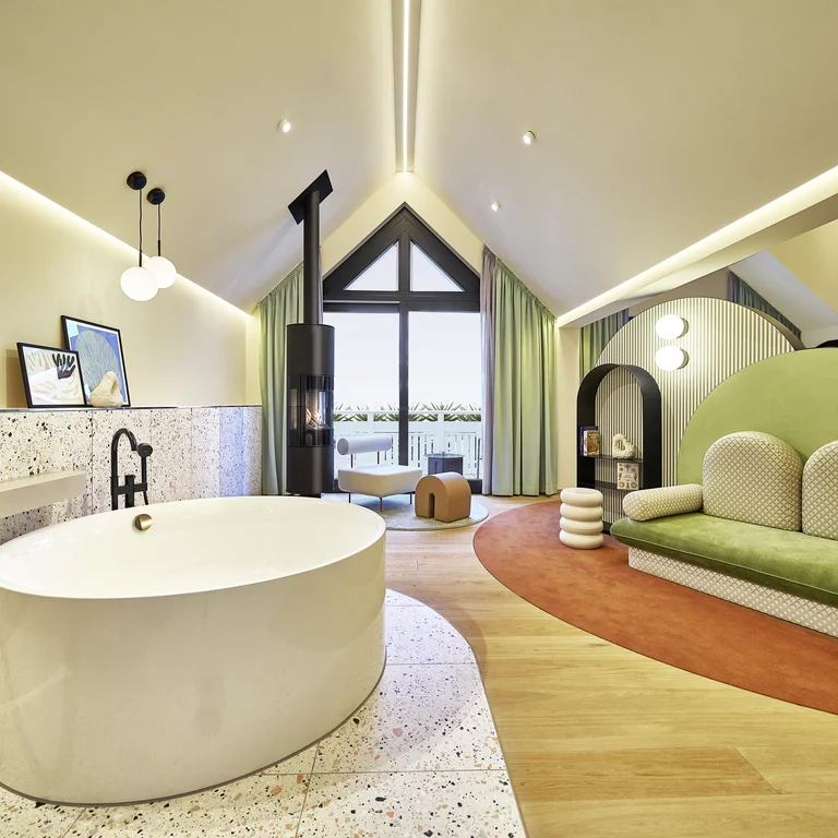 Les suites Eatrenalin de Krønasår sont un complément spectaculaire à l'offre du parc d'attractions. Ces suites offrent une expérience unique et excitante aux clients en quête de sensations fortes et de luxe. Les suites sont équipées d'une technologie de pointe et d'éléments de design uniques et offrent une vue imprenable sur Europapark. L'architecture intérieure futuriste et sphérique est soutenue par nos modèles de baignoires autoportantes BetteEve Oval Silhouette et BettePond Silhouette.