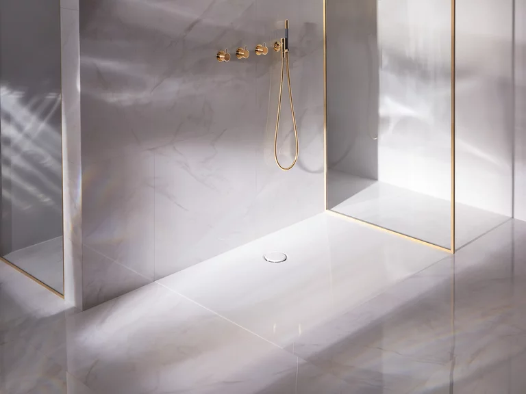 Vous avez remarqué ? Nous sommes passionnés par le design innovant. Notre concept de douche de plain-pied a changé le marché. Créer des tendances dans le monde entier est de plus en plus la norme. Nous continuons à perpétuer cette tradition : avec nos surfaces de douches de plain-pied minimalistes et maintenant nouvellement avec la première dalle de douche au monde, la BetteAir. Nos concepts s'intègrent harmonieusement à toute conception architecturale et peuvent être réalisés dans presque toutes les ambiances grâce à une technologie de pointe. Ainsi, nous créons un confort sans seuil, un effet spatial généreux et une liberté de mouvement absolue. Et même dans votre couleur préférée. D'autres questions ?