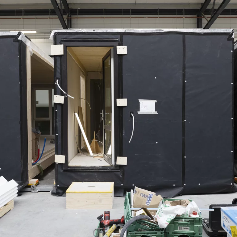 Le unità abitative sono state prefabbricate nello stabilimento Maat di Sliedrecht e assemblate in loco in poche settimane. Grazie a questo metodo, i tempi di costruzione, le emissioni e l'impatto sul quartiere sono stati notevolmente ridotti.