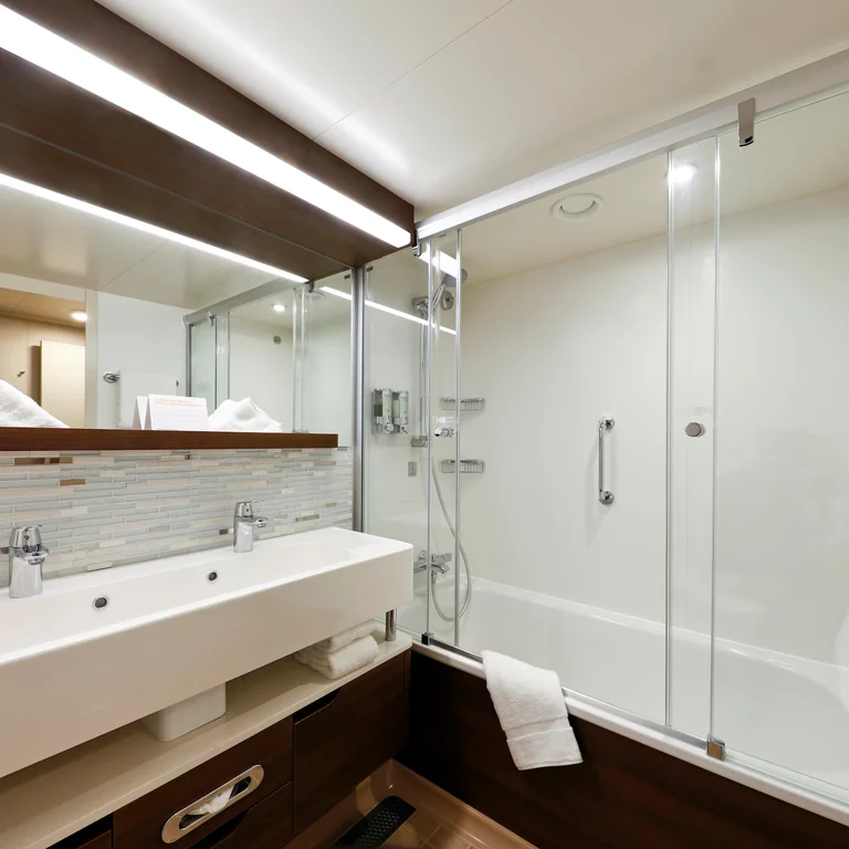 tot in de jaren 1970 werd er in de windmolen in Ottmarsbocholt graan gemalen. Nu fungeert het monumentale gebouw als woning van Jeannette en Alfred Bradford. Een plaats met een geheel eigen charme: 200 vierkante meter strekt zich uit over vier verdiepingen, de wanden zijn rond – in het geheel geen hoeken en randen. Waar vroeger spannen paarden werden geladen met meelzakken, staan nu een sobere tafel, lederen sofa en metalen stellingen onder een houten plafond van massieve balken. Voor purisme in de badkamer zorgen de wastafel en bad uit onze designlijn BetteArt. Een statement voor tijdloos functionalisme.