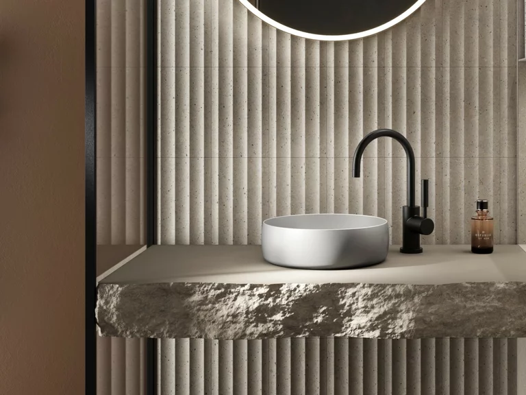 Wastafels in natuurlijke tinten zoals beige, bruin of grijs creëren een warme, uitnodigende sfeer. Deze kleuren passen goed bij badkamers in natuurlijke of rustieke stijl en kunnen een gezellige omgeving creëren die doet denken aan een spa.