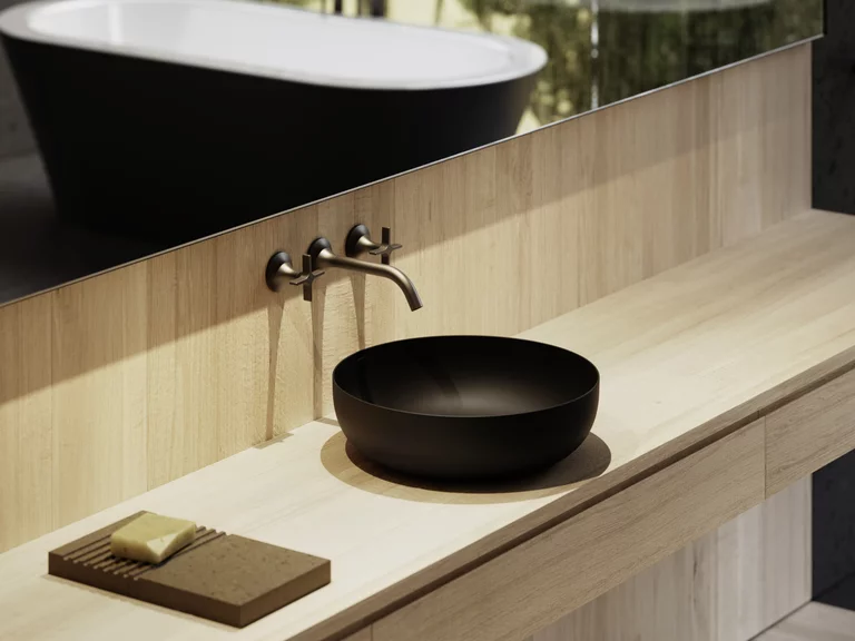 Zwarte wastafels stralen elegantie en verfijning uit. Ze zijn ideaal voor badkamers die een moderne, dramatische touch moeten uitstralen. Een zwarte wastafel kan dienen als een opvallend designelement en een vleugje luxe toevoegen. Combineer ze met contrasterende kleuren en metalen accenten om een geraffineerde en moderne look te creëren.