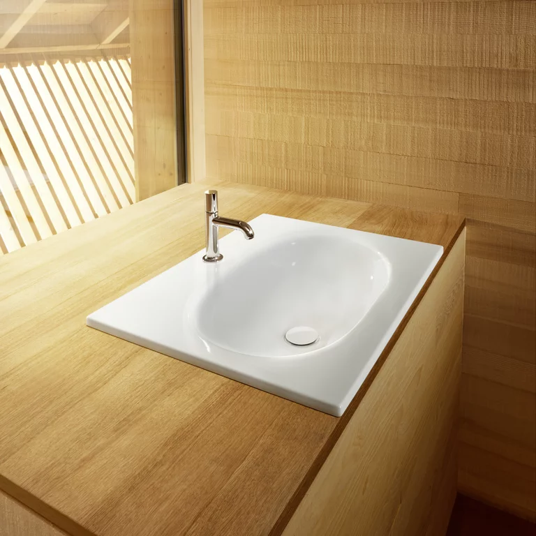 Als vuistregel geldt dat de wastafel op halve lichaamshoogte moet worden geïnstalleerd; het badmeubel komt eronder, afhankelijk van het ontwerp. Dit geldt zowel voor vormen zoals de rechthoekige wastafel als voor ovale vormen.