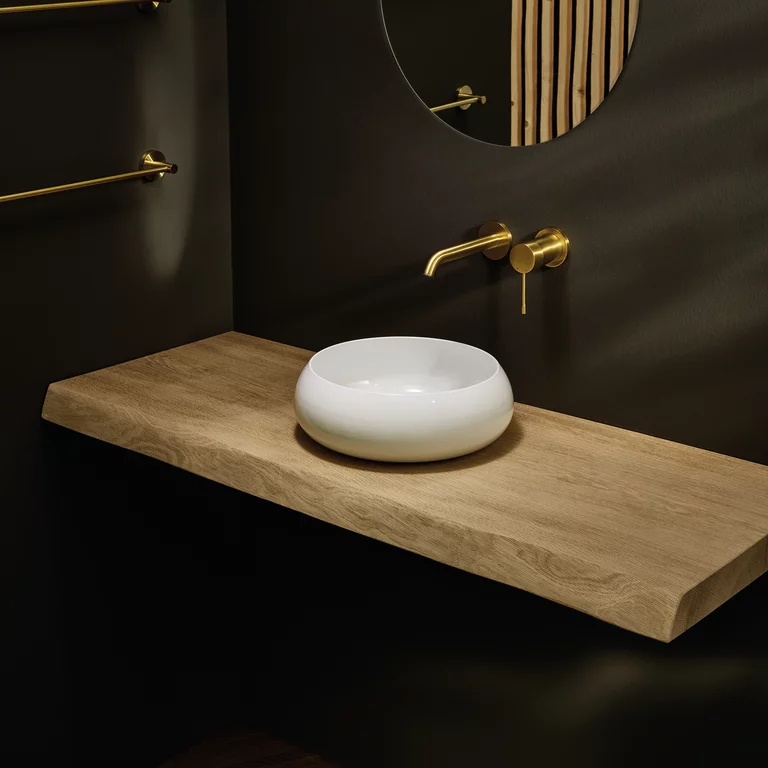 Ronde wastafels creëren een organische en zachte esthetiek in de badkamer. Hun gebogen lijnen geven de ruimte een harmonieuze en uitnodigende sfeer. Ideaal voor badkamers met afgeronde designelementen of voor wie van een zachte, natuurlijke sfeer houdt. Ze hebben vaak een compacte vorm die goed past in kleine badkamers of gastentoiletten.