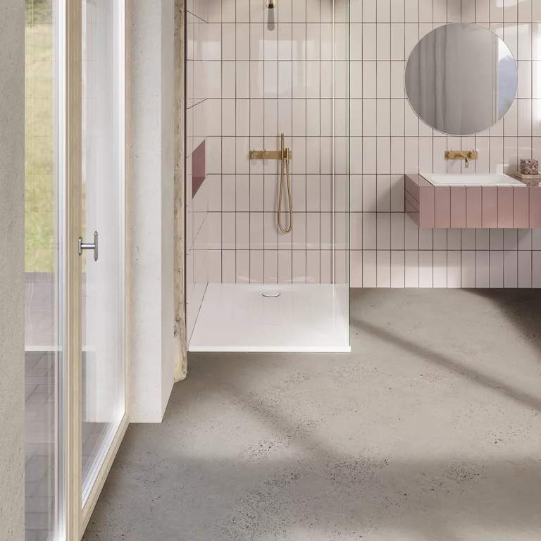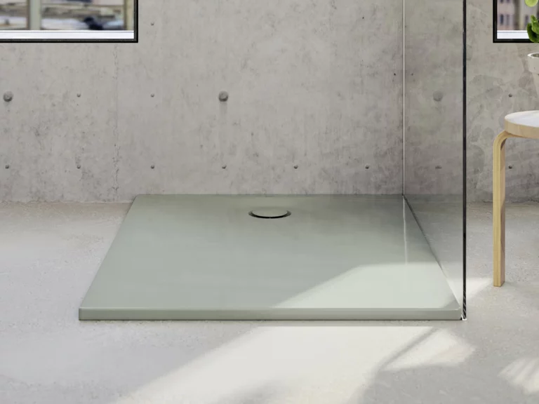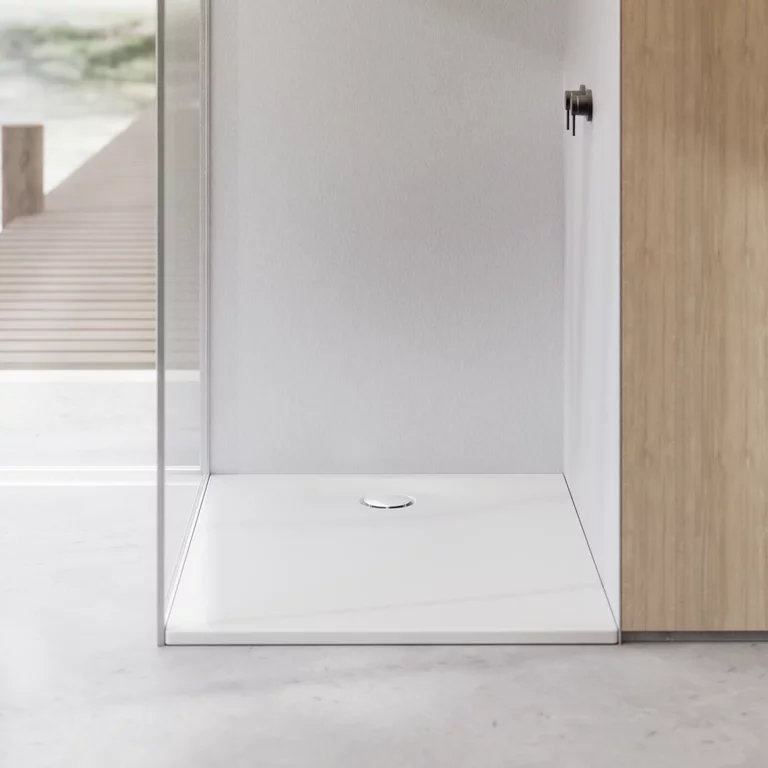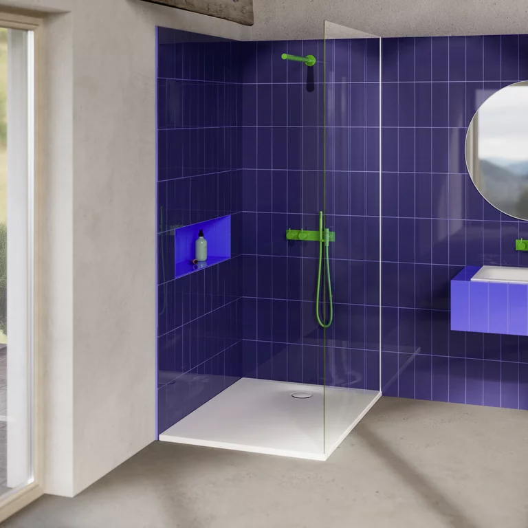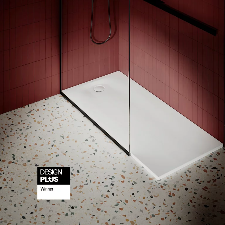 Gefertigt aus glasiertem Titan-Stahl überzeugt die Duschwanne mit ihrer außergewöhnlichen Robustheit und einer Tiefe von nur 15 mm.