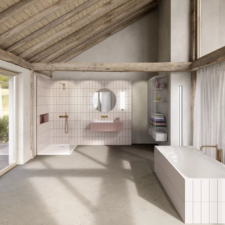 Mit einer Einbauhöhe ab 90 mm, zahlreichen Abmessungen und einer großen Farbvielfalt fügt sich BetteUltra Space harmonisch in jede Badarchitektur ein.