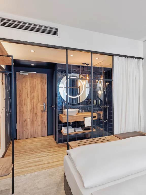 Отели сети H входят в число немногочисленных семейных независимых гостиничных компаний Европы. Этот бренд присутствует на рынке уже более 50 лет и является символом постоянного развития, перспективных гостиничных концепций и устойчивого роста. Поэтому нет ничего удивительного в том, что недавно открывшийся отель этой группы — бюджетная гостиница H2 в Дюссельдорф Сити — оборудован душевыми поддонами BetteUltra в ванных комнатах. Потому что это продукция Bette, которая отличается изысканным минималистским дизайном и натуральными материалами. Поэтому нет ничего удивительного в том, что почти 90 процентов гостей оценили отель H2 как «очень хороший».