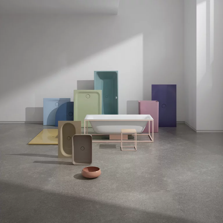 Bereits am Bauhaus war die Farben- und Formenlehre essentieller Ausbildungsbaustein. Künstler und Architekten wie Kandinsky, Itten und Le Corbusier beschäftigten sich intensiv mit Goethes Farbenlehre und sorgten dafür, dass Farbe aus der Moderne nicht mehr wegzudenken ist. Sven Rensinghoff, Marketingleiter bei Bette: „Vorreiter der Farbenlehre am Bauhaus war Johannes Itten, der sich intensiv mit dem Zusammenwirken von unterschiedlichen Formen und Farben auseinandersetzte und damit experimentierte. Für uns bei Bette ist er ein Vorbild und Inspiration, Farbe ist ein entscheidendes Element in unserem Designprozess.“