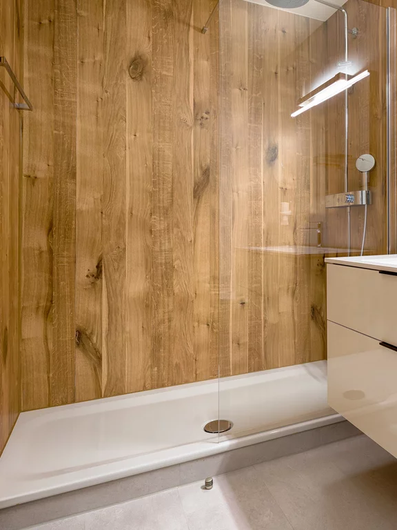 在安装淋浴盘时,我们首次使用了 BetteLevel 系统支脚,因为我们希望从这种安装方法节省的时间中获益,并为正在进行的翻新工作积累经验。
