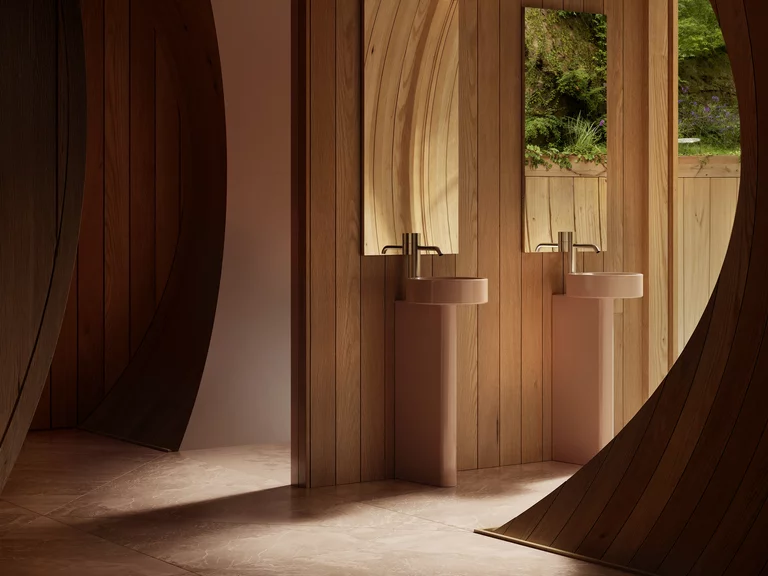 计划中包括 BetteSuno 基座洗脸盆、BettePond Silhouette 浴缸和与地面齐平的 BetteAir 淋浴间,打造与建筑风格完美融合、满足舒适性、精确性和永恒美学要求的浴室。