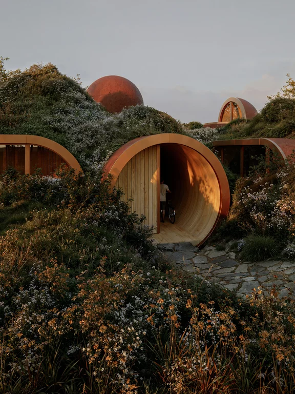 凭借“脚踏实地”的概念,Studio Precht 为 H.O.M.E. 设计了一栋具有远见、模块化的房屋:贴近自然、可变、被视为活生生的有机体。弯曲的空间边界、温暖的木质建筑和绿色的屋顶使室内与景观之间的过渡变得流畅。其独特之处在于:该建筑的设计使其能够灵活地扩大或缩小,从而将不同的生活模式和不同年龄段的人聚集在同一屋檐下。