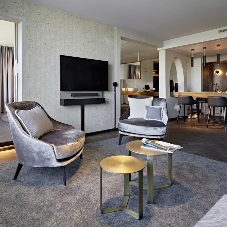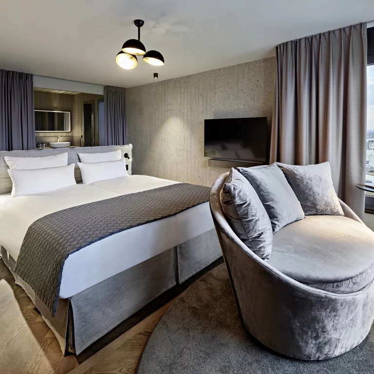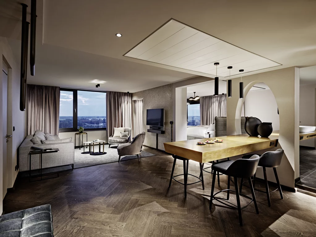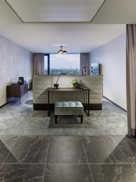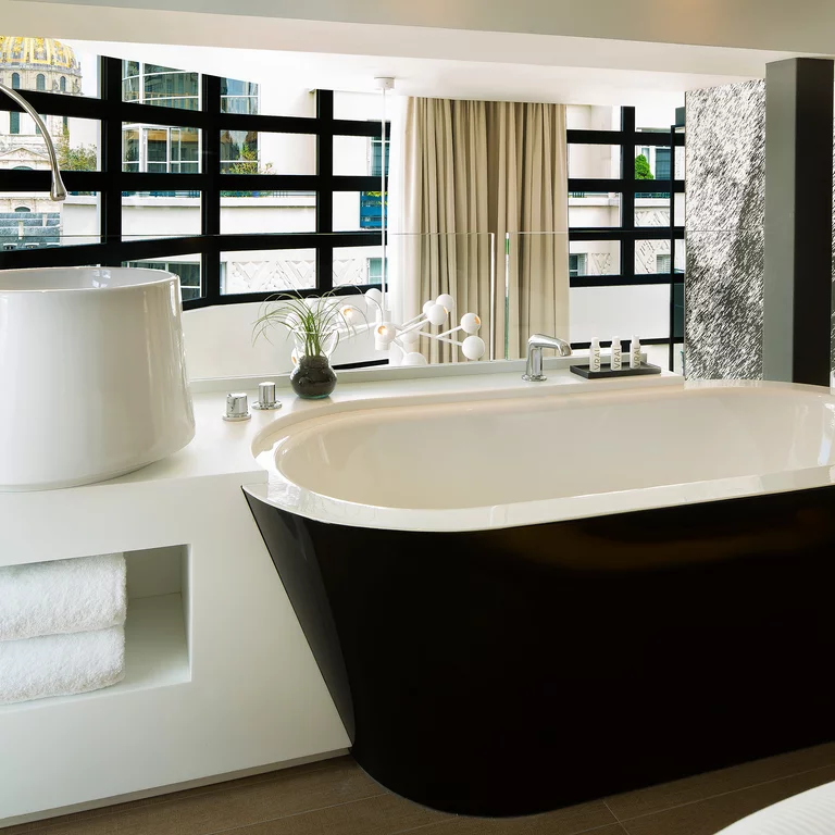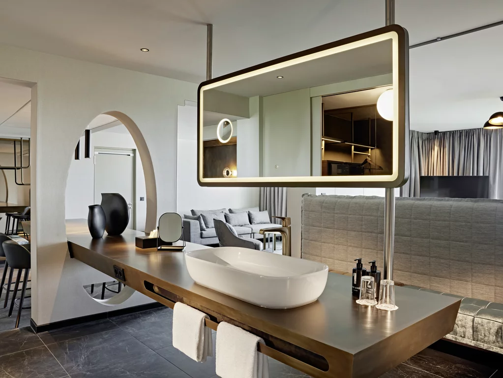 杜塞尔多夫的 Lindner Congress 旅馆坐落在 Rheinauen 对面,拥有约215间客房 —— 其中的一部分采用了不寻常的设计。例如:水上运动和船只爱好者们可以真切地感受到豪华游艇的氛围。在各种高档材料和海洋风格设计元素的围绕下,客人们会感觉如同在海边度假一样轻松。在豪华套房的浴室里,我们的 BetteEve Oval Silhouette 浴缸和我们的 BetteStarlet Oval Silhouette 浴缸体现了极简主义的优雅。任何希望以独特的方式放松身心的客人,都应该订一间装有 Bette 按摩浴缸的套房。我们的 BetteSpa 涡流按摩系统为客人们创造完美的休憩时光。